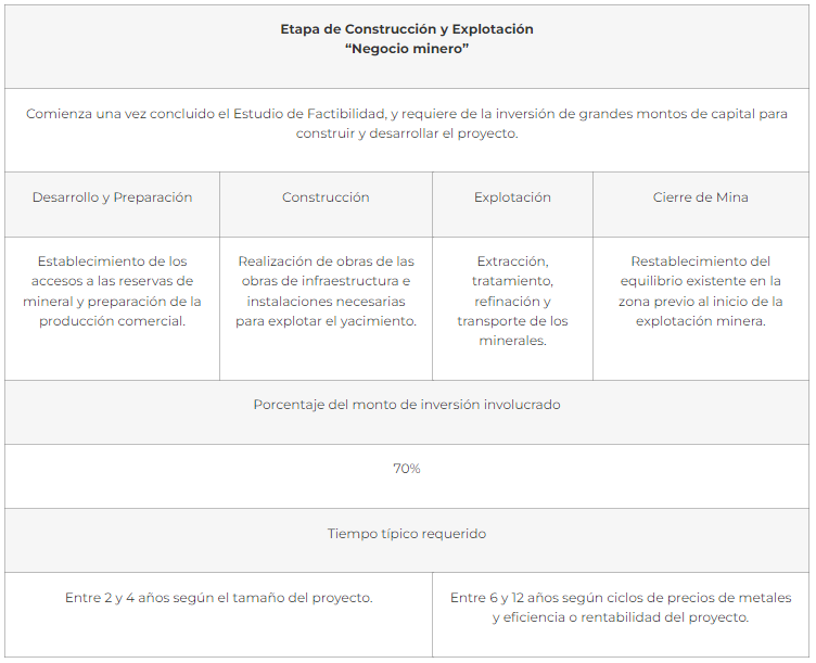 Desarrollo y Preparación | Construcción | Explotación | Cierre de Mina | ||||||||